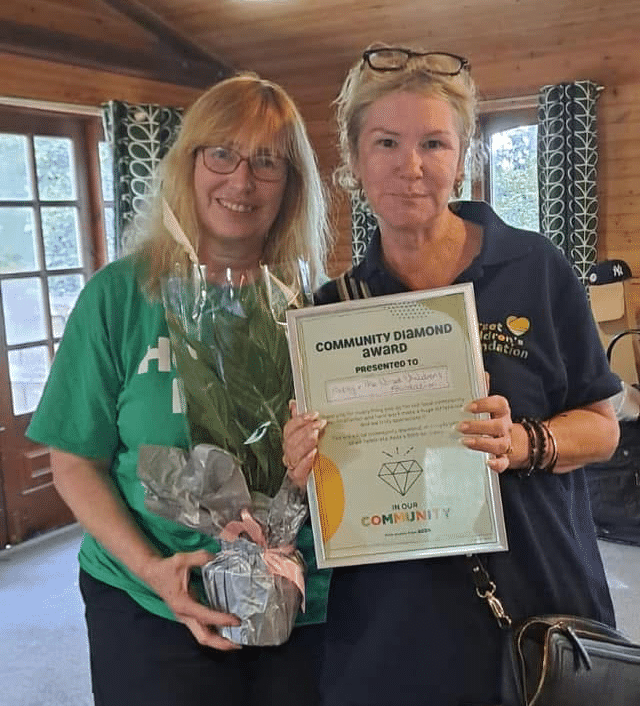 Nicky Pelling from from Asda took our co- founder Patsy completely by surprise by awarding her a Diamond Community Champion…
